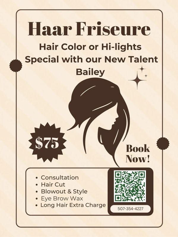 Haar Friseure is a full-service salon located in the heart of downtown New Ulm, Minnesota. Our team of skilled stylists offer a wide range of hair, nail, and skin care services to help you look and feel your best. From precision haircuts and vibrant color treatments to relaxing massages and rejuvenating facials, we're dedicated to providing an exceptional experience tailored to your individual needs. Visit us today and let us transform your look and enhance your natural beauty.